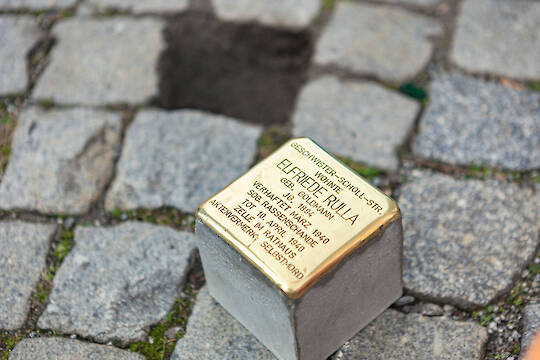 Mit dem Stein gedenken wir der Jüdin Elfriede Rulla geb. Goldmann.