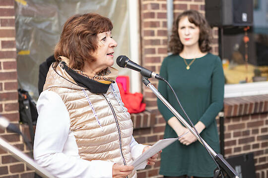 Zur Verlegung waren ca. 150 Personen anwesend, darunter viele Schülerinnen und Schüler aus Sprembergs Schulen. Die sechste Klasse der Astrid-Lindgren-Grundschule begleitete die Veranstaltung mit Gesang. Gerade auch für Kinder und Jugendliche ist es wichtig, diesen Teil ihrer Stadtgeschichte kennenzulernen. Da wir in Spremberg auch an den Schulen immer wieder Schwierigkeiten mit Rechtsextremismus haben, sind bereits diese jungen Menschen dazu aufgerufen, Friedenszeichen weiterzutragen.