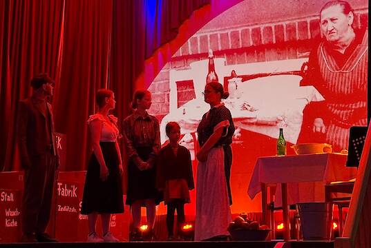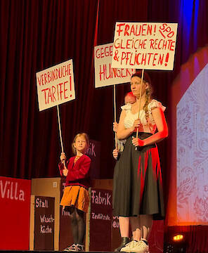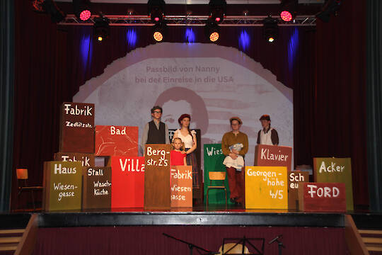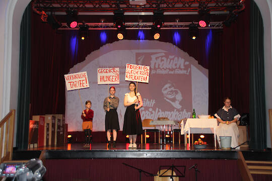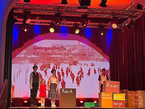 Beim Fest der Nachbarschaft zeigten Kinder und Jugendliche im Bergschlösschen zwei Theaterstücke mit Geschichten von früheren Nachbarinnen und Nachbarn: Erzählt wurde von der jüdischen Familie Levy, deren Wirkungsstätte sich u.a. von der Bergstraße über die Georgenstraße bis in die Wiesengasse erstreckte, und von der SPD-Widerstandskämpferin Berta Jänchen, die während der NS-Zeit auch in der Wiesengasse wohnte. Das Publikum war tief bewegt von den jungen Darstellerinnen und Darstellern, die mit großer Hingabe und tiefem Respekt die berührenden Lebensgeschichten auf die Bühne brachten. Aufgrund der großen Resonanz werden nun Pläne für weitere Auftritte geschmiedet.