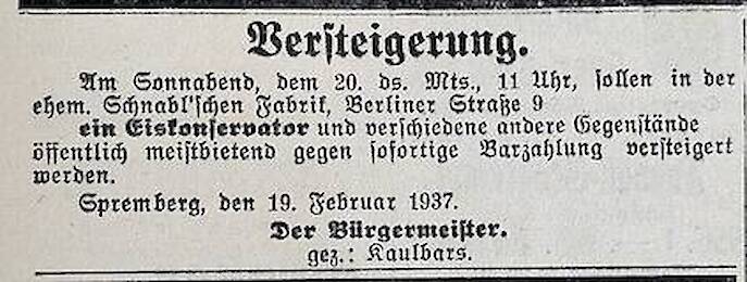 In der Berliner Straße 6 befand sich bis 1929 die Tuchfabrik Emil Schnabl einer jüdischen Kaufmannsfamilie. Hier war neben der Familie Schnabl auch der jüdische Bürger Nathan Bernfeld tätig.