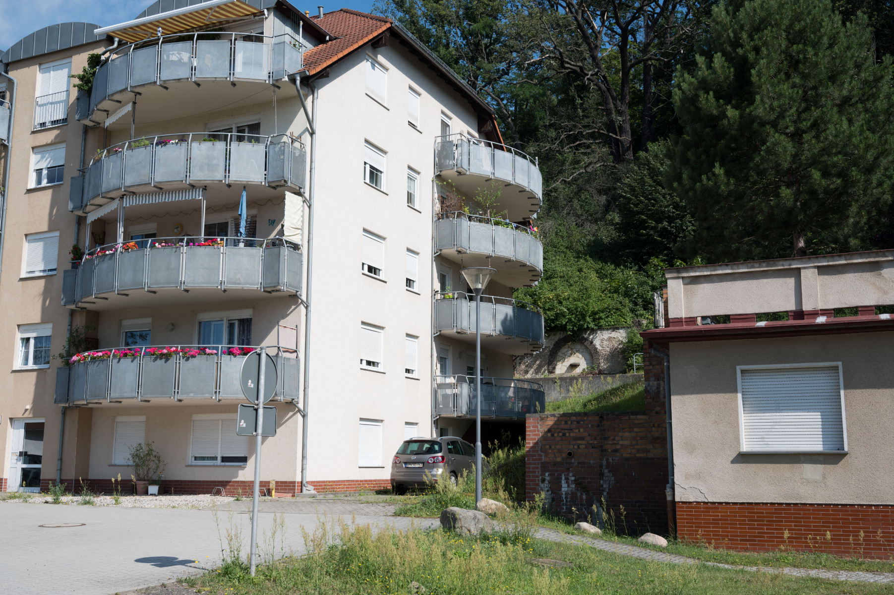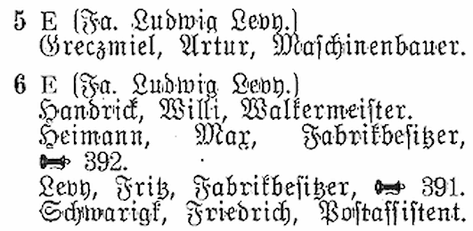 Die Häuser der Wiesengasse 5 und 6 gehörten der jüdischen Familie Levy und Heimann. Die Wiesengasse 5 wurde 1929 erbaut und war 1169 qm groß. In der Wiesengasse 6 stand eine 1887 erbaute Villa, die von der Familie 1927 samt Stall und Waschküche komplett saniert und umgebaut wurde: Sie maß fast 4000 qm, bestand aus zwei Fünfzimmerwohnungen und einer Dreizimmerwohnung. 1939 wurden die Gebäude weit unter ihrem Wert an den Fabrikbesitzer Gustav Foos verkauft.1 Die letzte jüdische Bewohnerin des Hauses war Elly Schönfeld, die von 1938-1939 dort lebte.2
