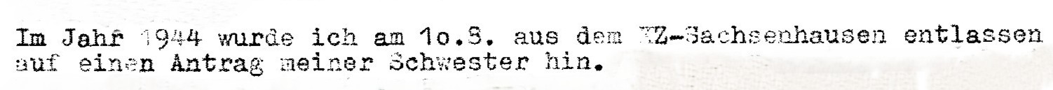 | 10.08.1944 | Entlassung aus dem Konzentrationslager Sachsenhausen auf Antrag seiner Schwester |