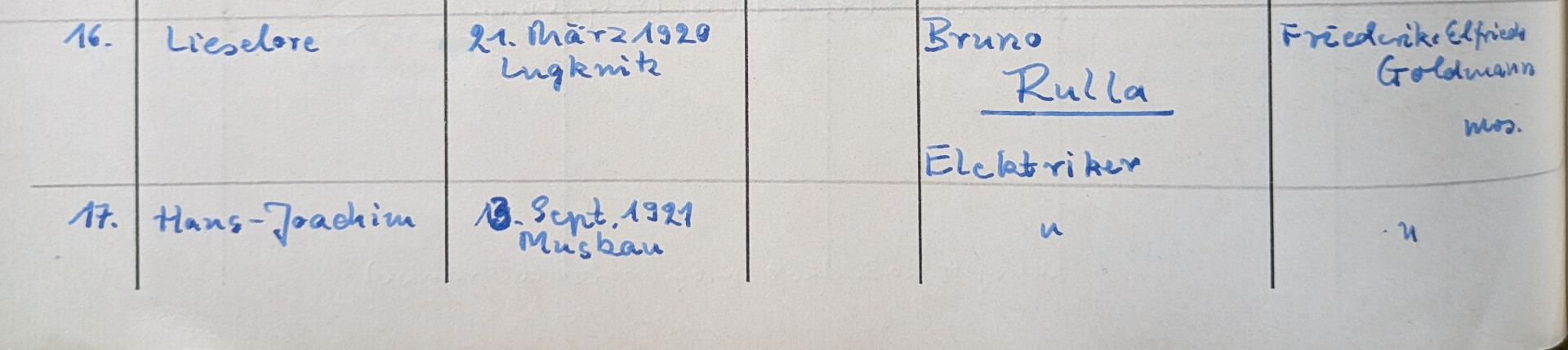 Am 17. September 2024 wurden für die Geschwister Lieselore und Hans Rulla in Spremberg STOLPERSTEINE neben dem Stein ihrer Mutter verlegt.