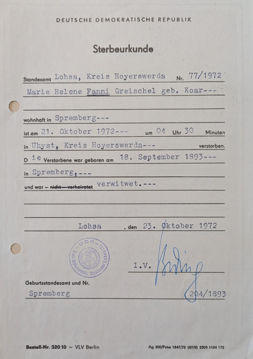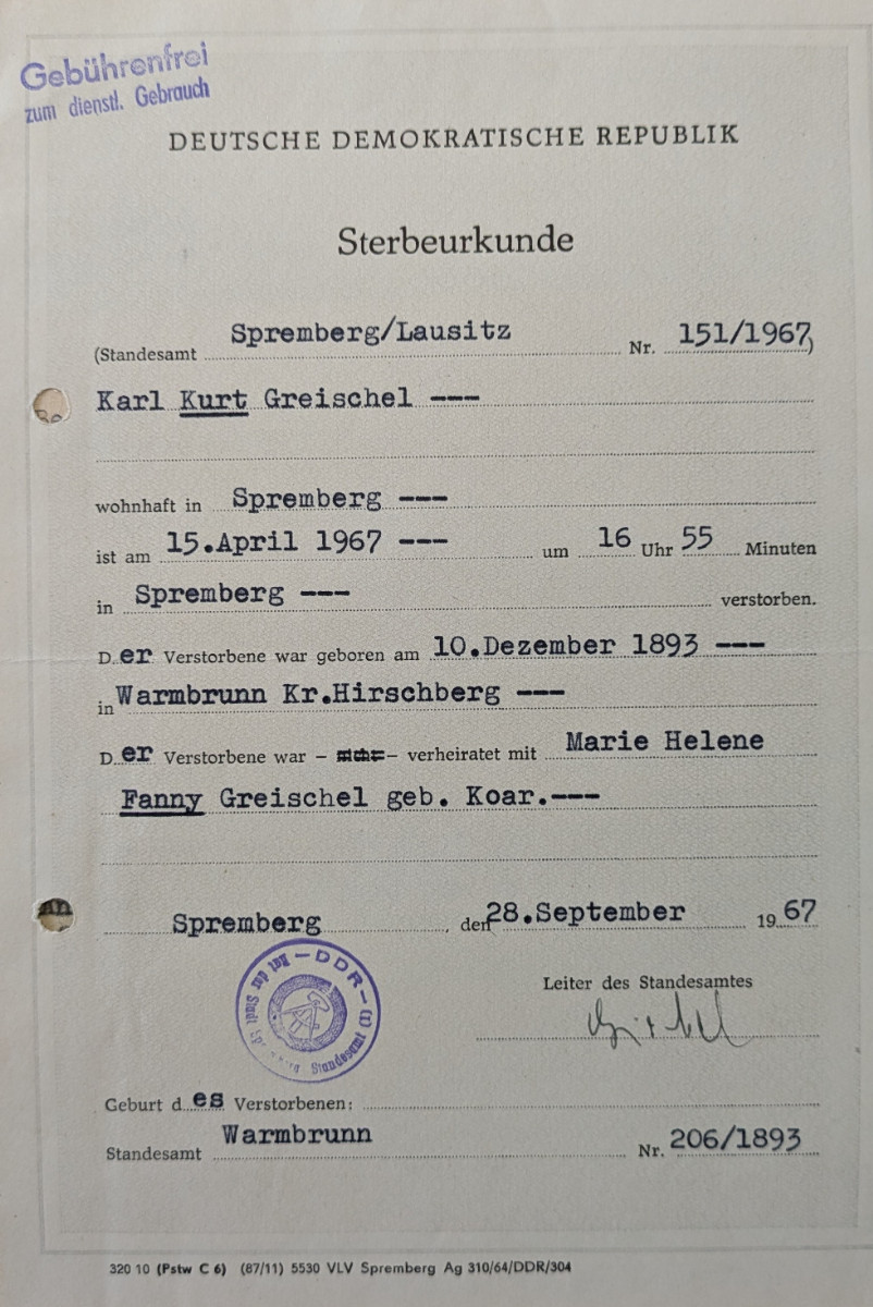 | 15.04.1967 | Todestag – in Spremberg |